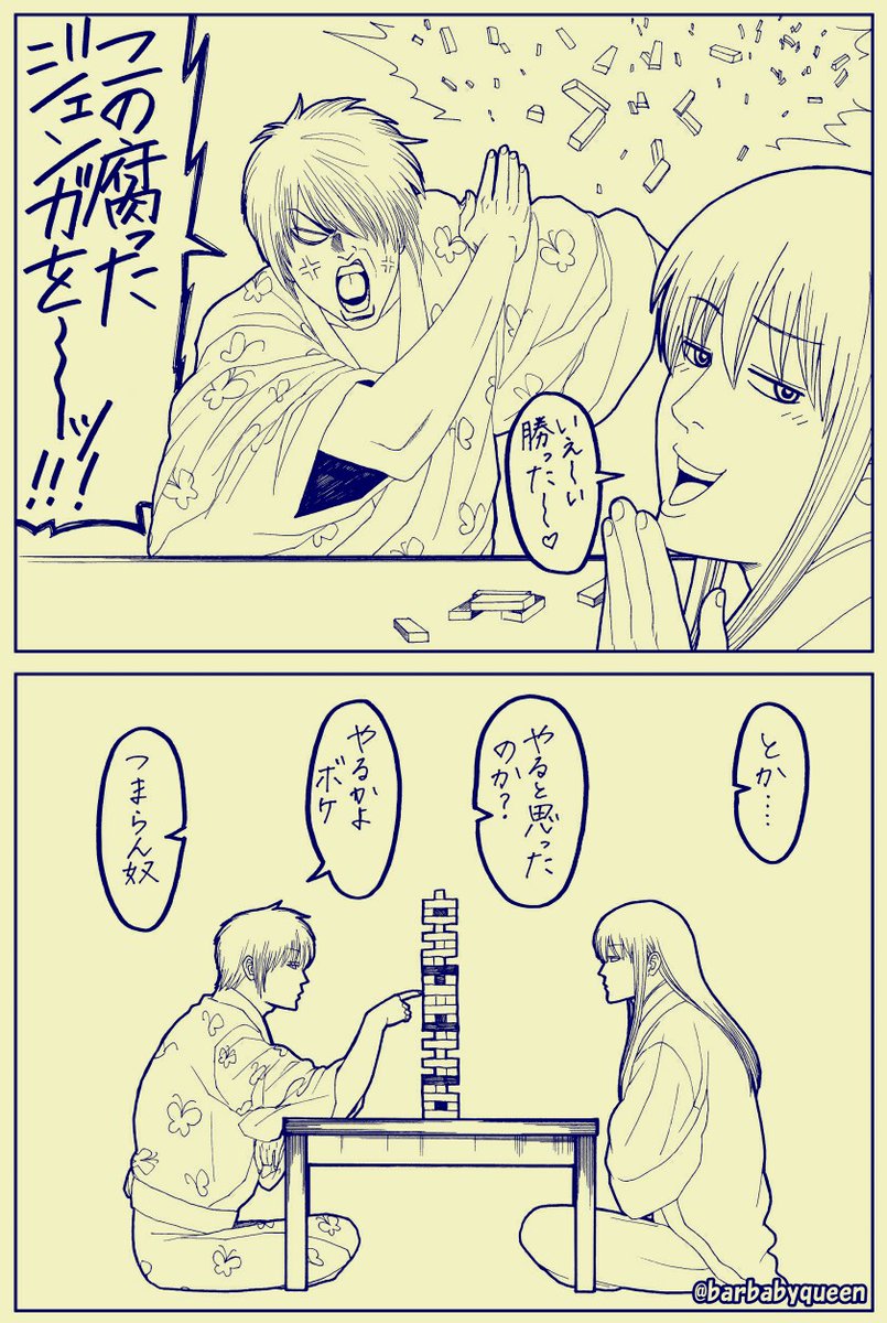 ジェンガで遊ぶ桂さんと高杉✏️ これ、昔突発的に思いついて何も考えずに作ったネタなんですけど。個人的にけっこう気に入っているwwww(面白くない等はおいておいて…w)