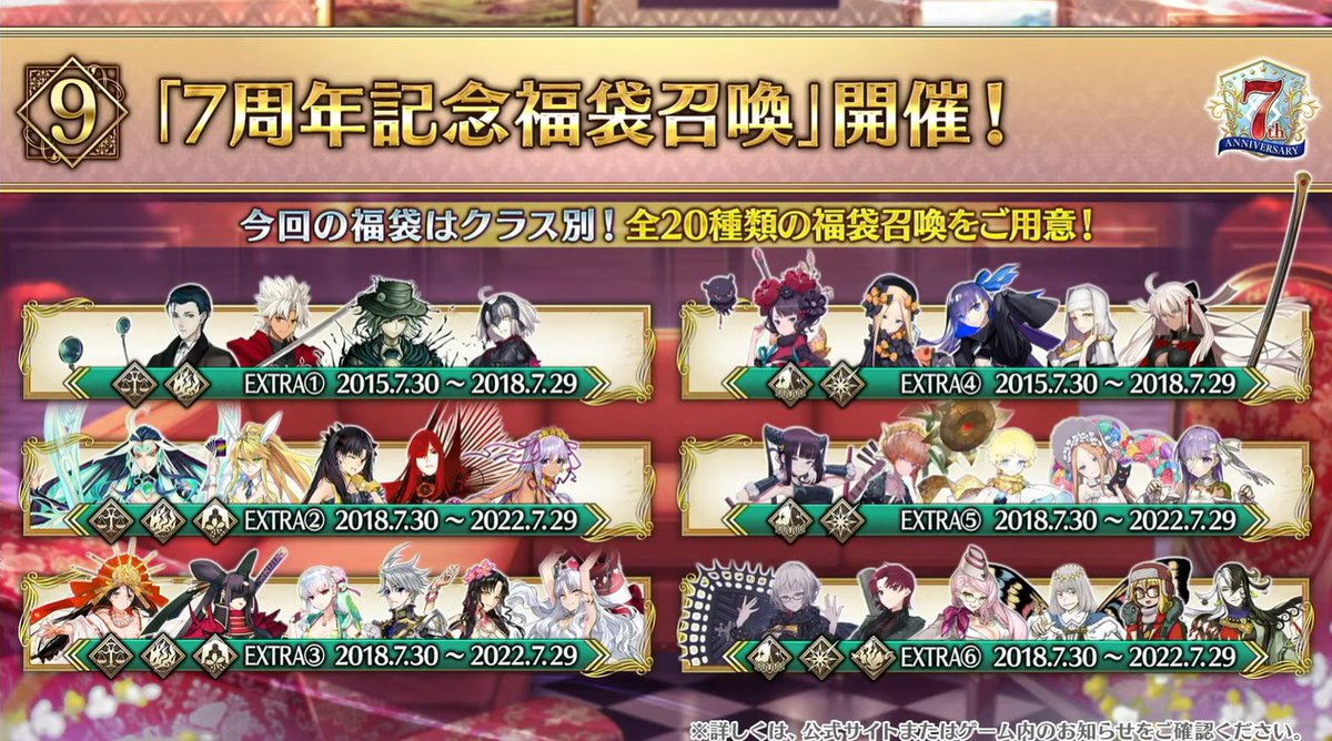 7周年記念福袋召喚のラインナップまとめ #FGO