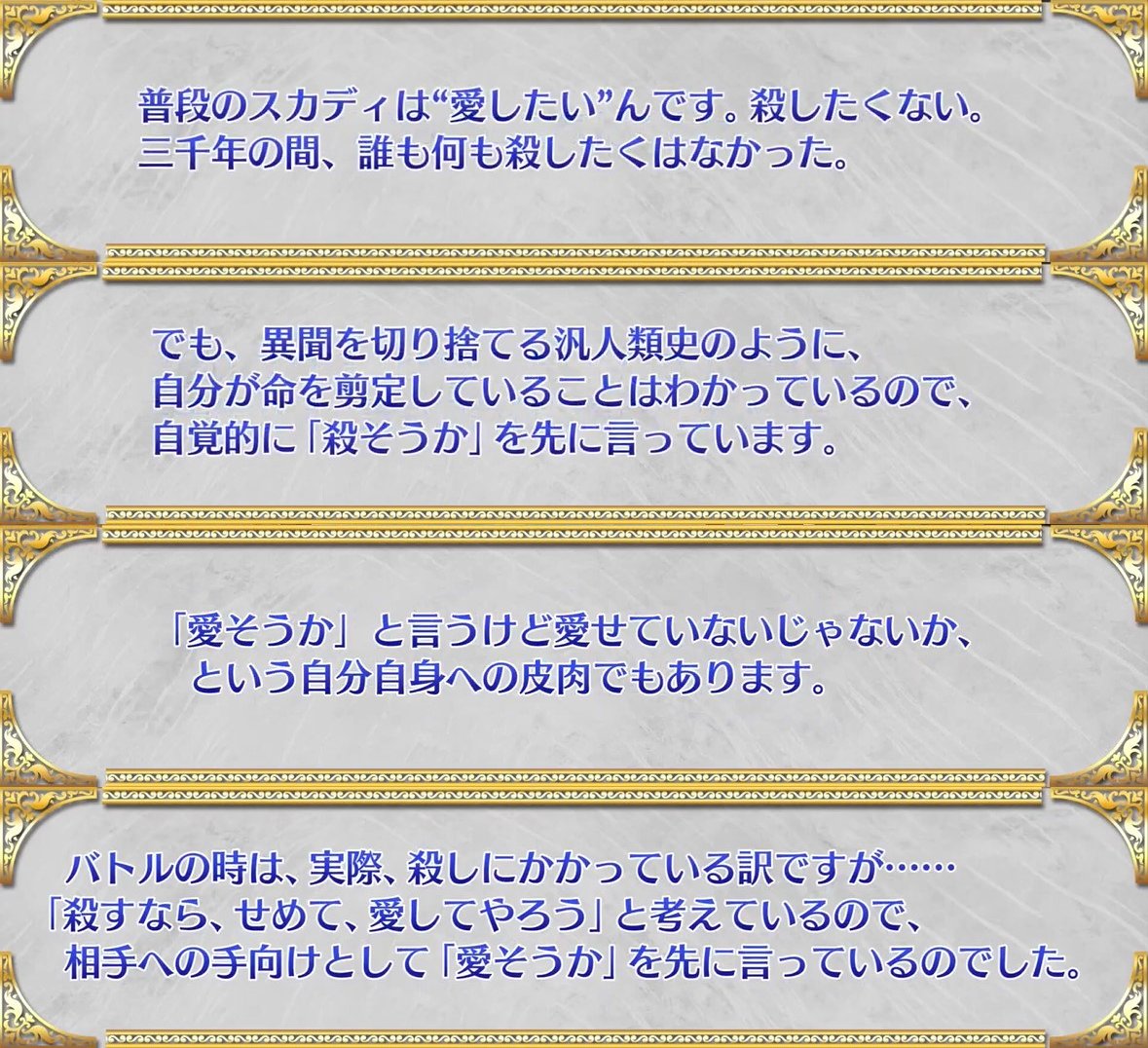 シナリオライターさんが語るスカサハ=スカディの「愛そうか」の台詞の前後の差異と意味。あまりにも愛深き北欧異聞帯を統べる女王。 #FGO