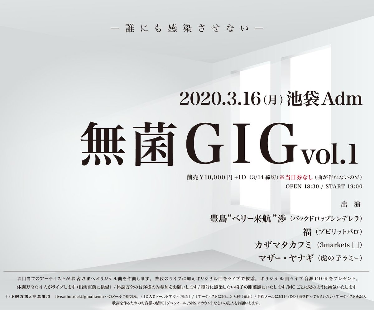 とりあえずライブハウスってのは、はい!明日からいいですよ!って突然言われていきなりバンドが演奏してお客さん来てくれるなんて事はないの。何ヶ月も前から準備するんすよ。そこんとこヨロシク