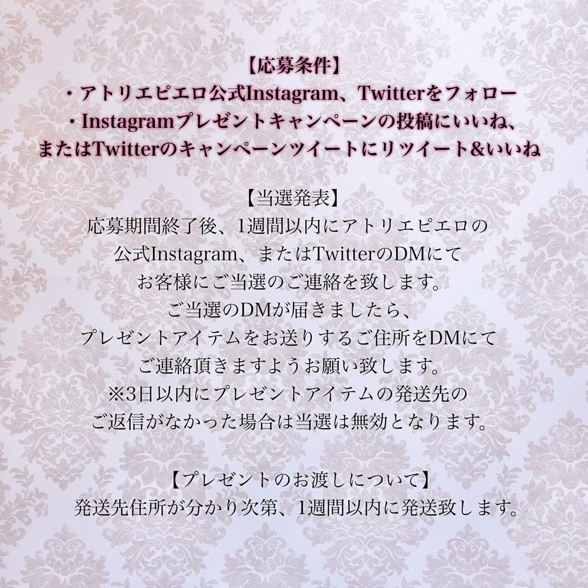 アトリエピエロの公式Instagram&Twitterをフォロー&いいねをして人気アイテムをゲットしよう🎵