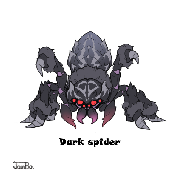 No46 Dark spider. 影に紛れ静かに獲物を仕留める森のアサシン。序盤で出会うとよっぽどの運が無い限り冒険が終わる。糸が重宝されると思う。