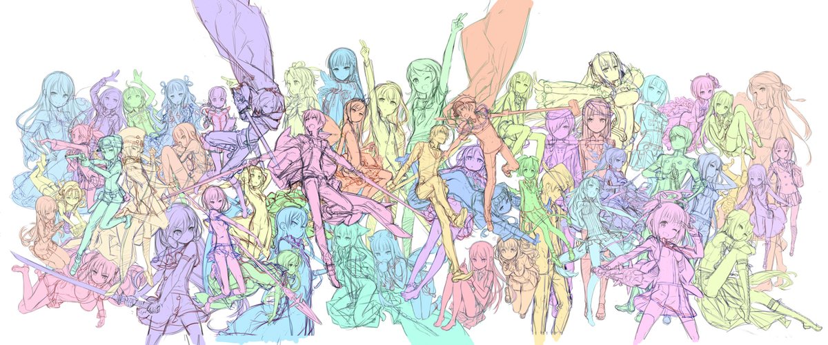 黒星紅白画集3冊電子書籍化記念!今日は『blanc』から1枚。サモン4のキャラたちはカラフルで、どう描いても華やかになるので好きamzn.to/3EDoJT3 @amazonより