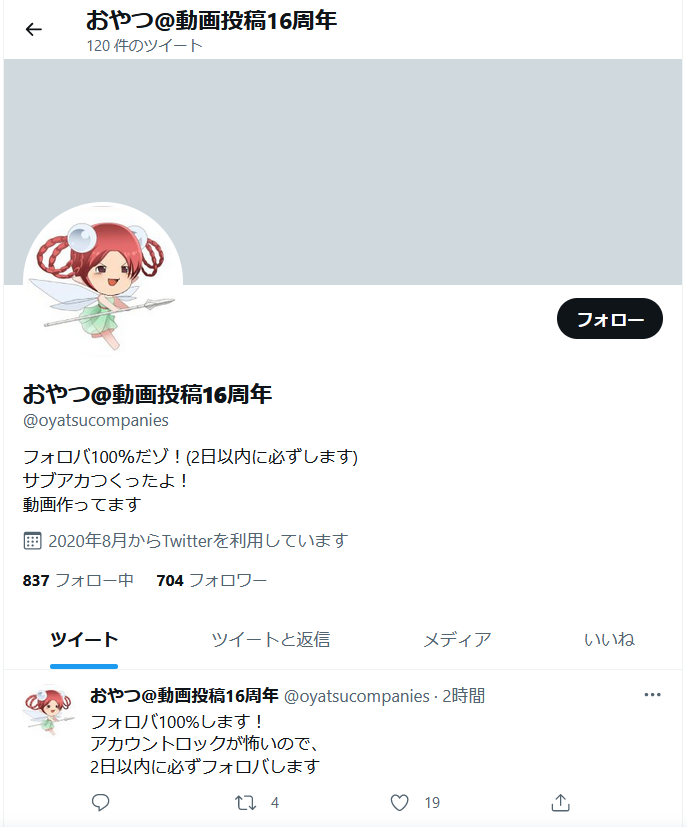 ちなみにこの偽物は私をブロックして現在ユーザー名を@oyatsusougo100に変更しています