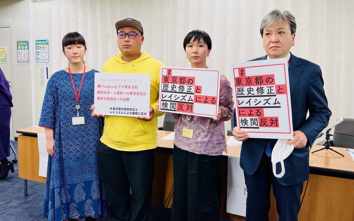 「この問題は東京都知事が「⼩池百合⼦都知事」でなければ起きなかったことでしょう。⼩池都知事の⻑年にわたって関東⼤震災の朝鮮⼈虐殺犠牲者の追悼式典に追悼⽂を送らないという態度は、歴史の否定、差別の煽動であると考えます」(飯山)