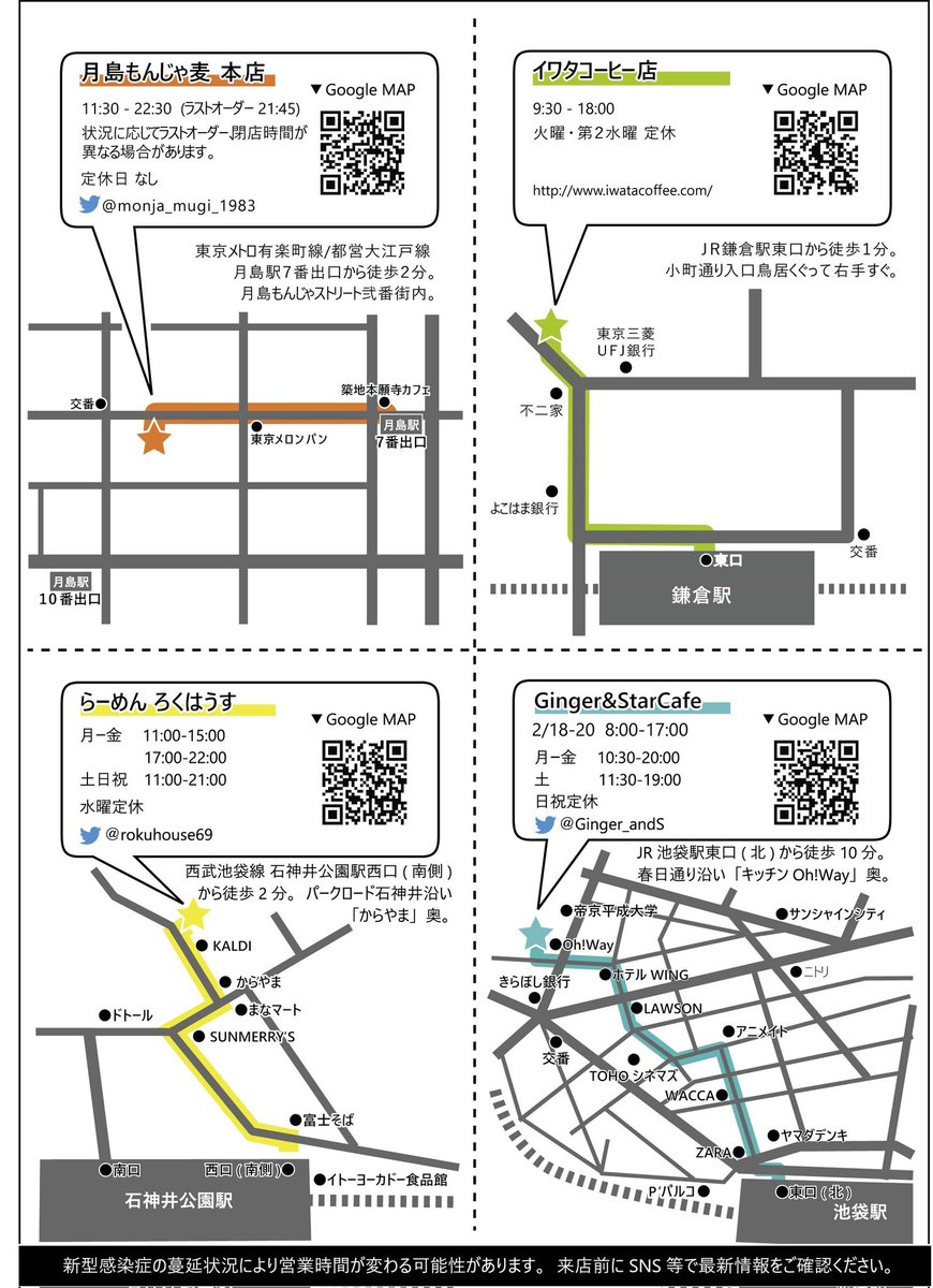 今回は4店舗、もんじゃ麦(@monja_mugi_1983 )さん、ろくはうす(@rokuhouse69 )さん、イワタコーヒーさん!!
