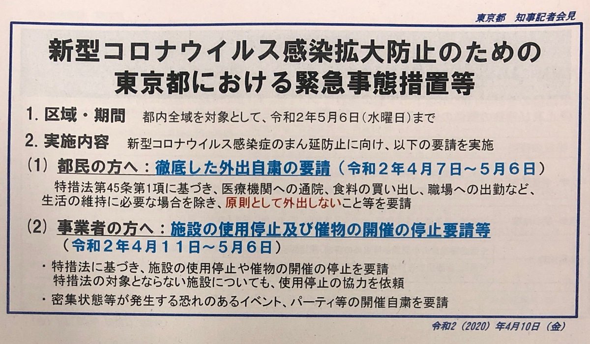 東京都が休業要請の概要を発表