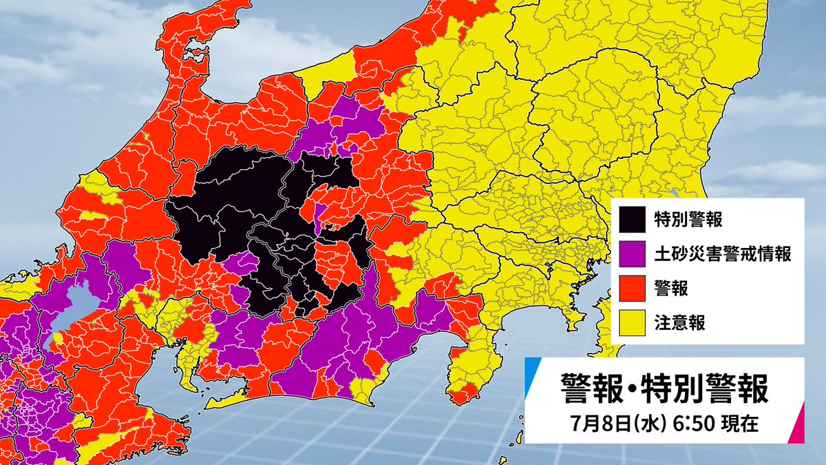 災害の危険度が非常に高い地域が広がっているし、これからさらに広がりそう。ヒトゴトと思わずに安全確保をお願いします。