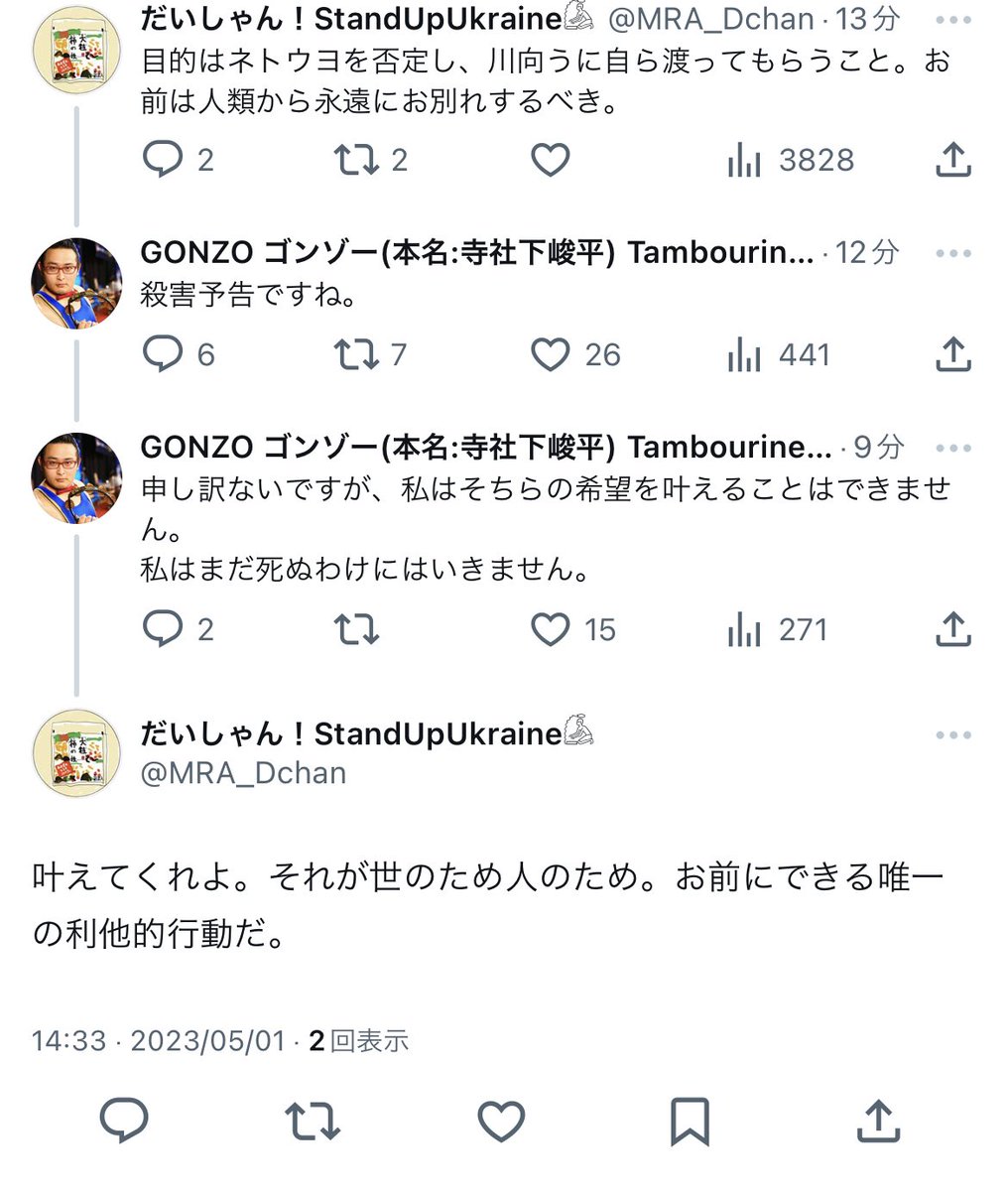 殺害予告をされました。 twitter.com/mra_dchan/stat…
