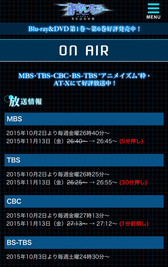 『蒼穹のファフナー EXODUS』キャラソンアルバムの収録内容発表☆そして、発売日を12月30日に変更させて頂くこととなりました。fafner-exodus.jp/news/20151122.… #fafner