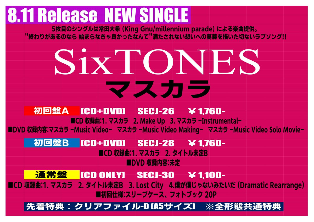 ■SixTONES『マスカラ』(先着特典有り/残り僅か)