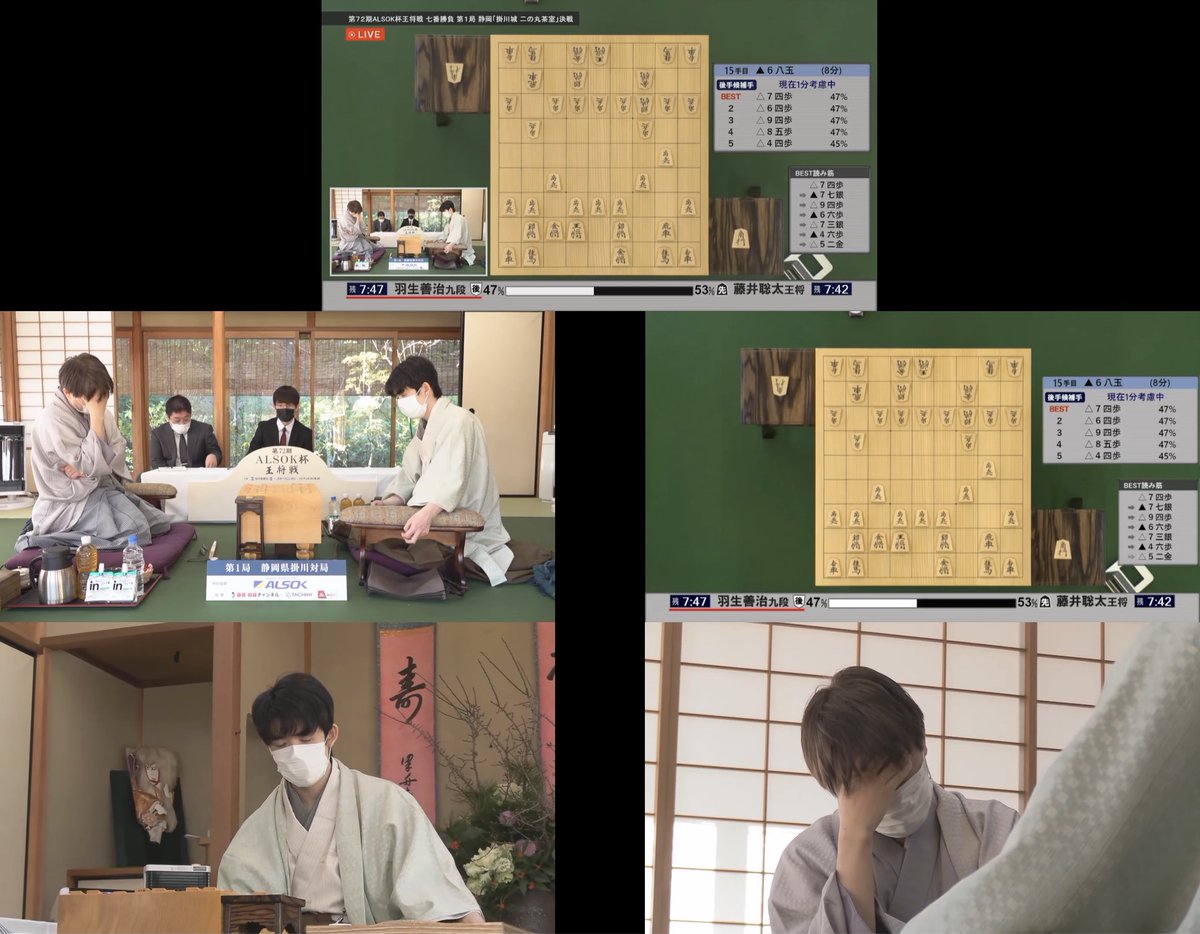 藤井王将映像/羽生九段映像の5画面