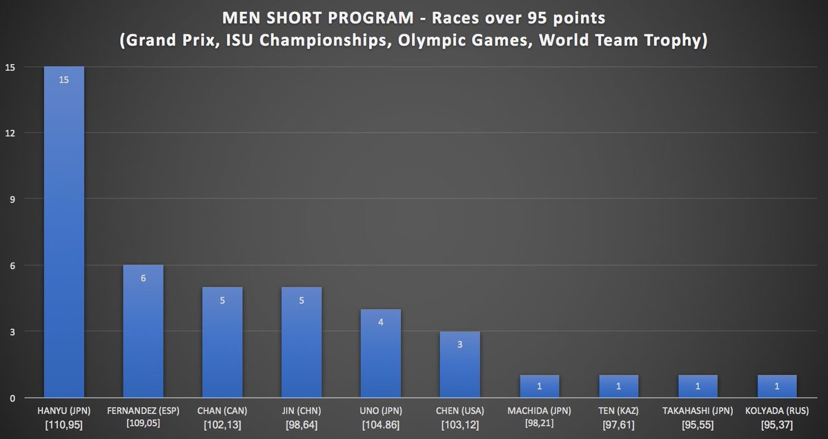 Since then #YuzuruHanyu has exceeded 95 points in the SP 15 times