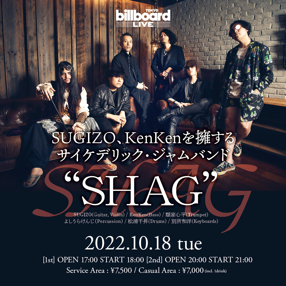 [LIVE] 10月18日(火)Billboard Live TOKYOにて、サイケデリック・ジャムバンド「#SHAG」開催!現在、一般チケット予約受付中です。