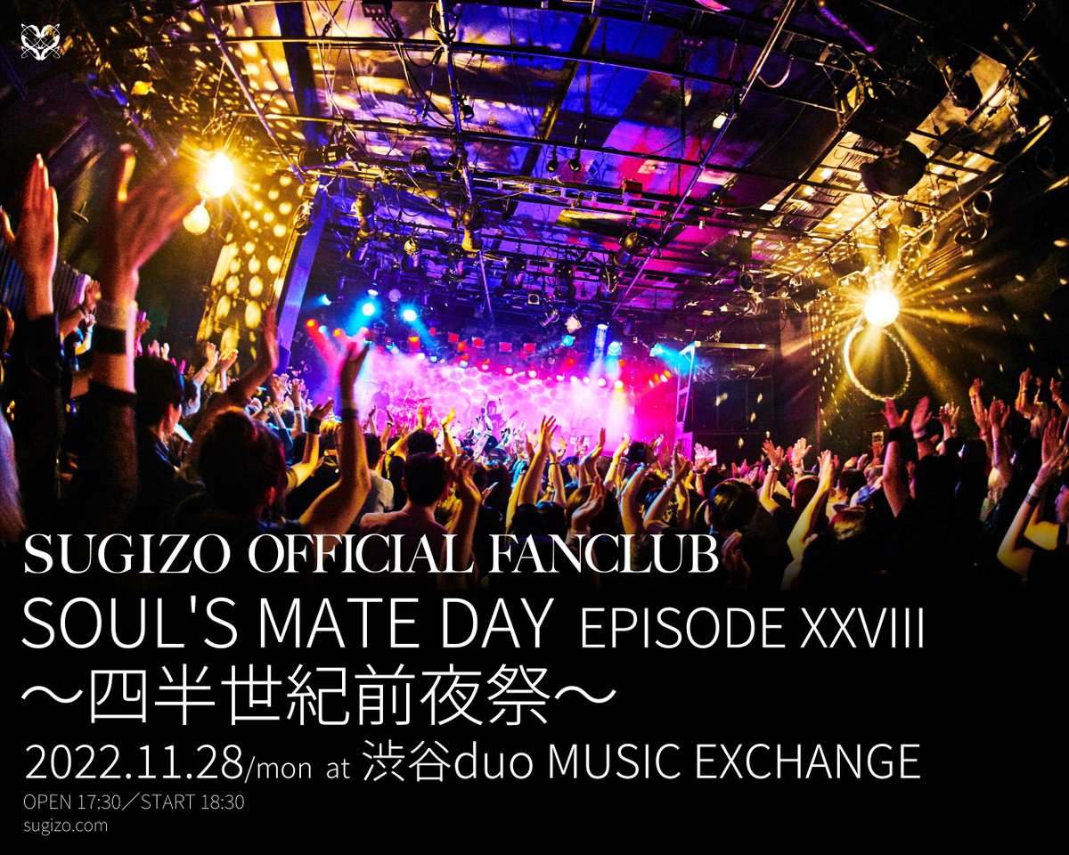 #SUGIZO FC限定LIVE「SOUL'S MATE DAY EPISODE XXVIII~四半世紀前夜祭~」が、11/28(月)渋谷duoMUSIC EXCHANGEにて開催決定!