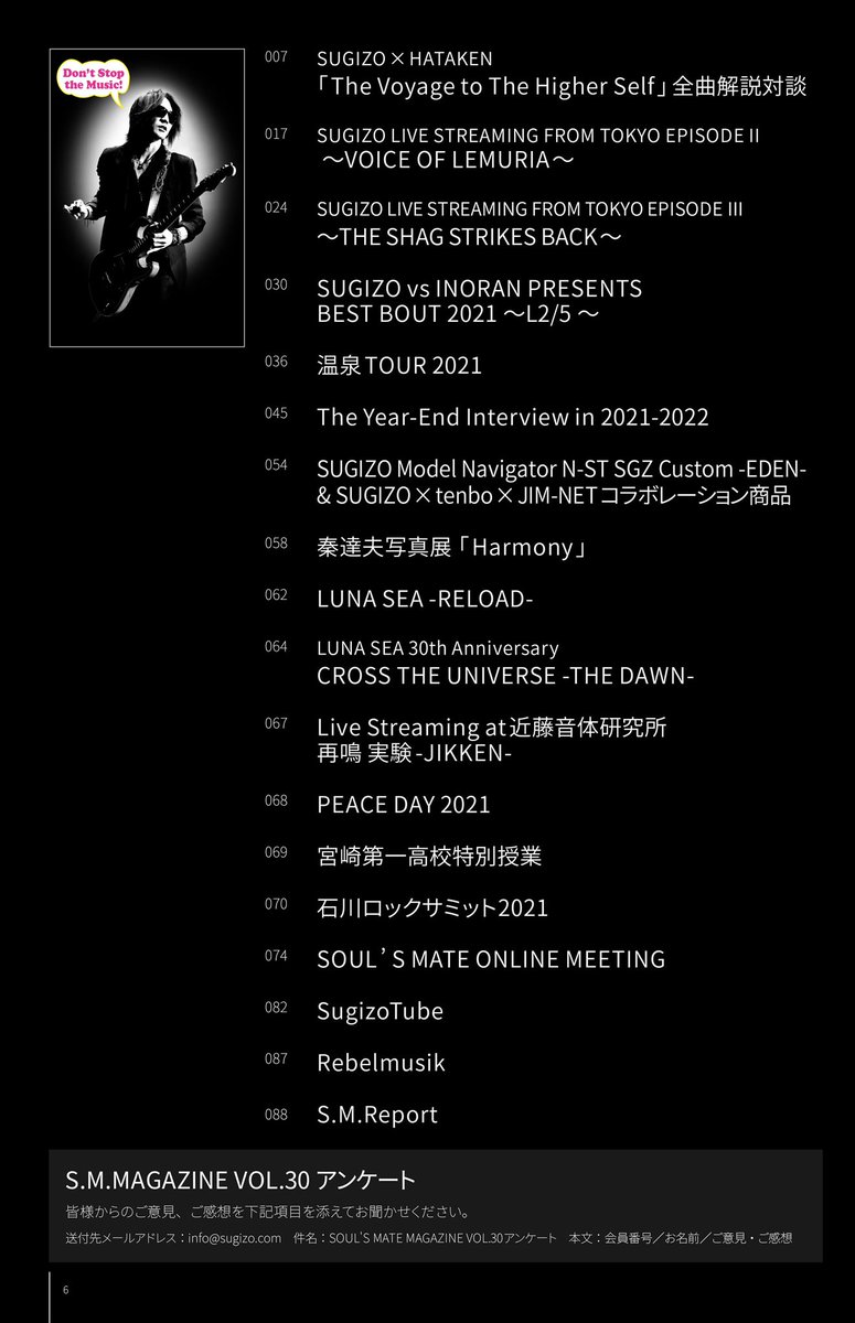 [SOUL'S MATE] 大変お待たせ致しました、#SUGIZO FC限定 WEB会報『S.M.MAGAZINE VOL.030』を公開致しました!