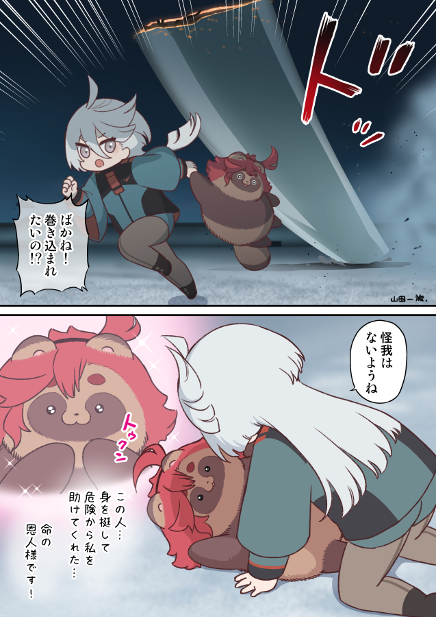 出撃ごっこをする二人