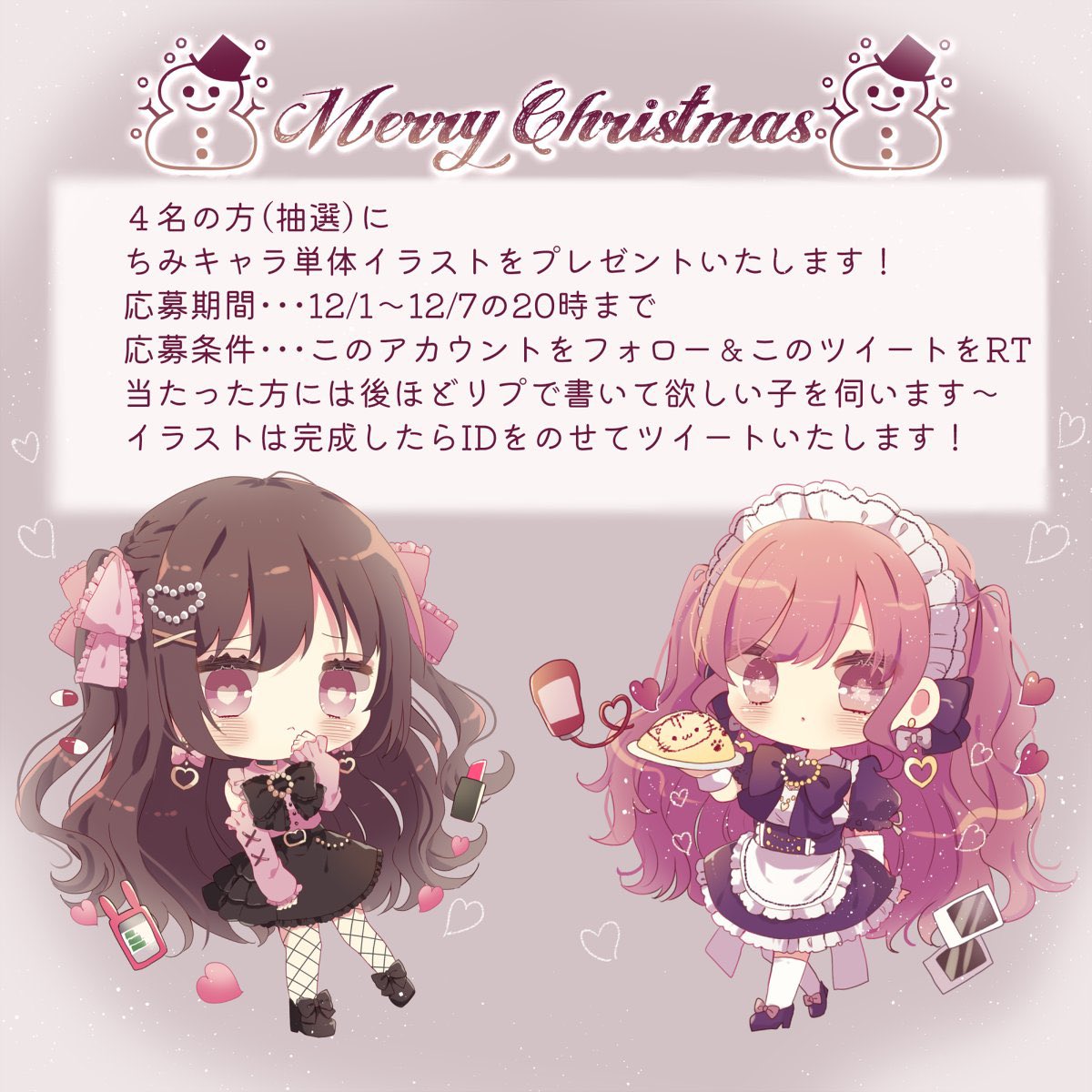 🎁クリスマスプレゼント企画🎄 伊咲サンタが4名の方にちみキャラ単体イラストをプレゼント🎅(抽選) 創作、版権なんでもかまいません〜 画像参照の上ぜひご応募ください\( *´꒳`*)/