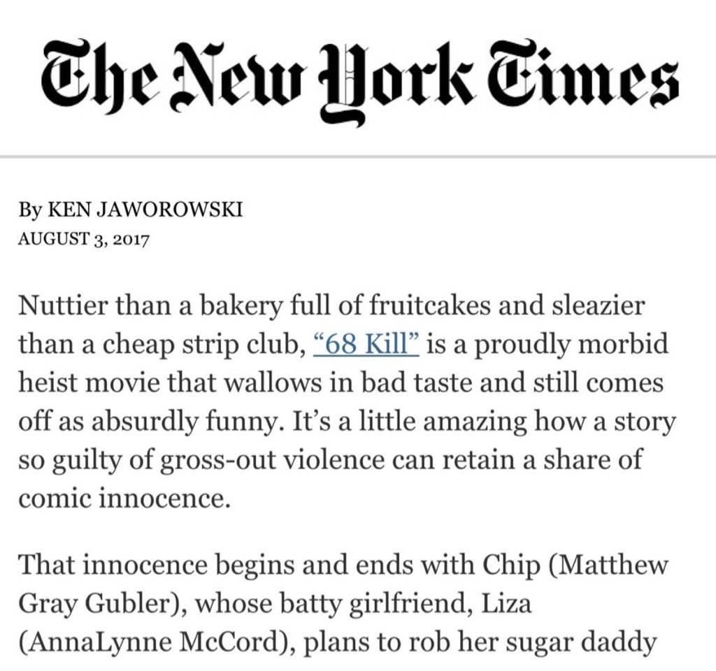 #68kill opens this weekend and i'll be doing a Q&A in NYC saturday at 10pm at @IFCCenter ifccenter.com/films/68-kill/