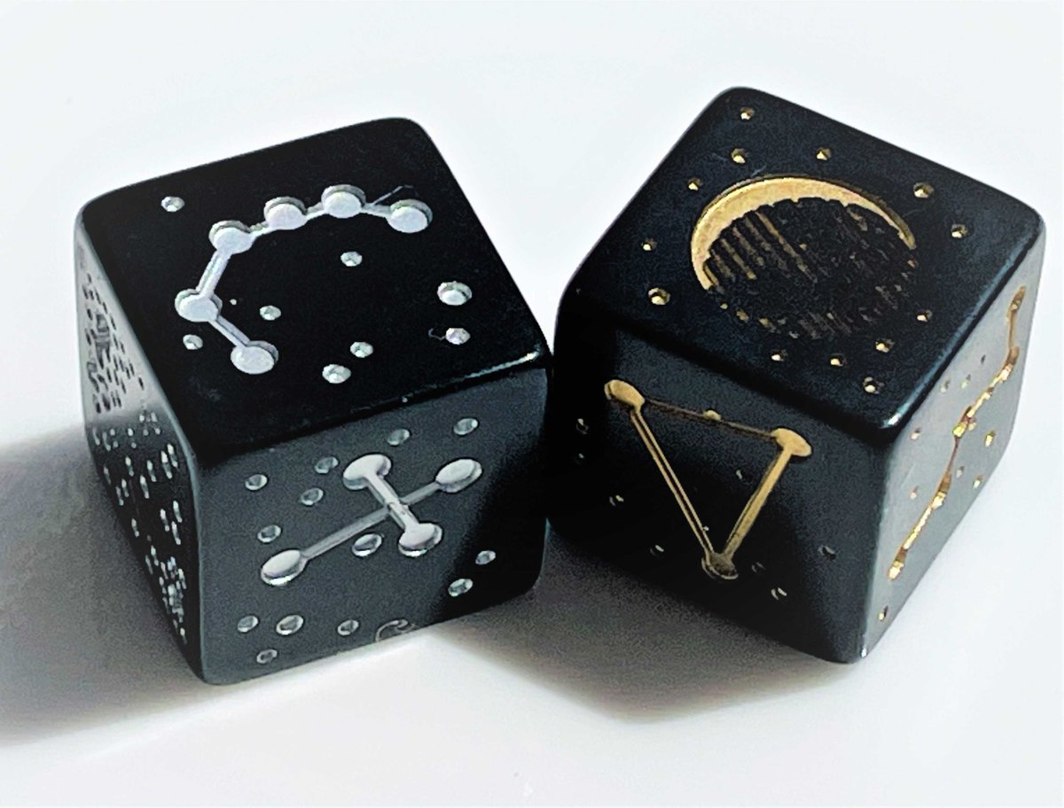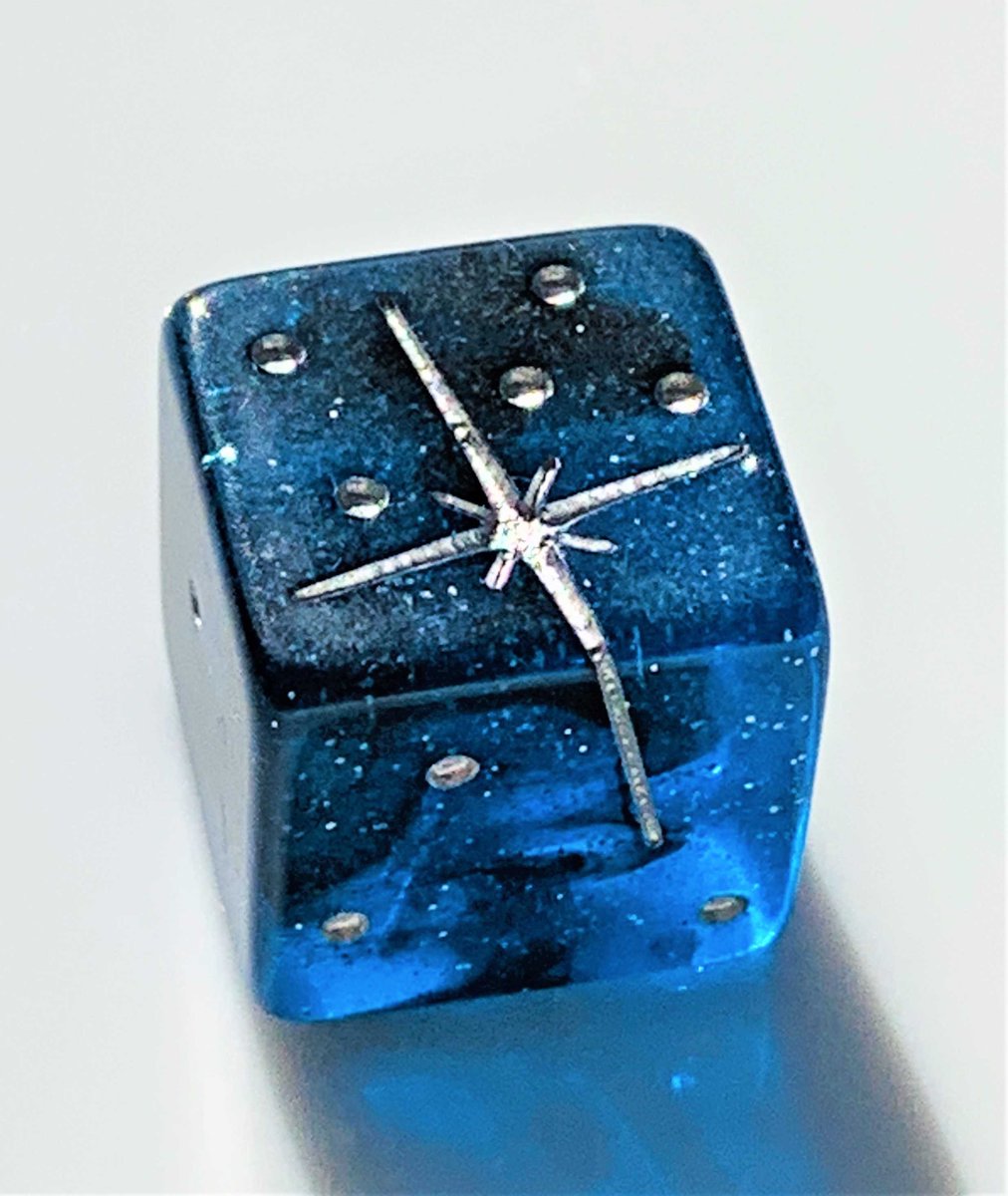 reachingmoon.raku-uru.jp/item-detail/50… 『運命の女神よ微笑みたまえ』 "Dea fatorum da mihi risus"と魔方陣の外側に書いてあります。当店販売中の「虹色に輝くクリスタル」のD6ダイスをベースにした当店オリジナルダイスです。 #本日のサイコロ。