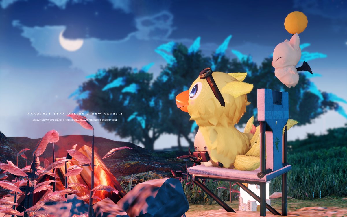 小技なんだけど好きな場所に座らせたいとき椅子を干渉無し設置してから設定で非表示にすることで好きな場所に座るポイントを作れる、木の上に座らせたり自作の椅子とか大きい椅子作りたいときには便利。 #PSO2NGS
