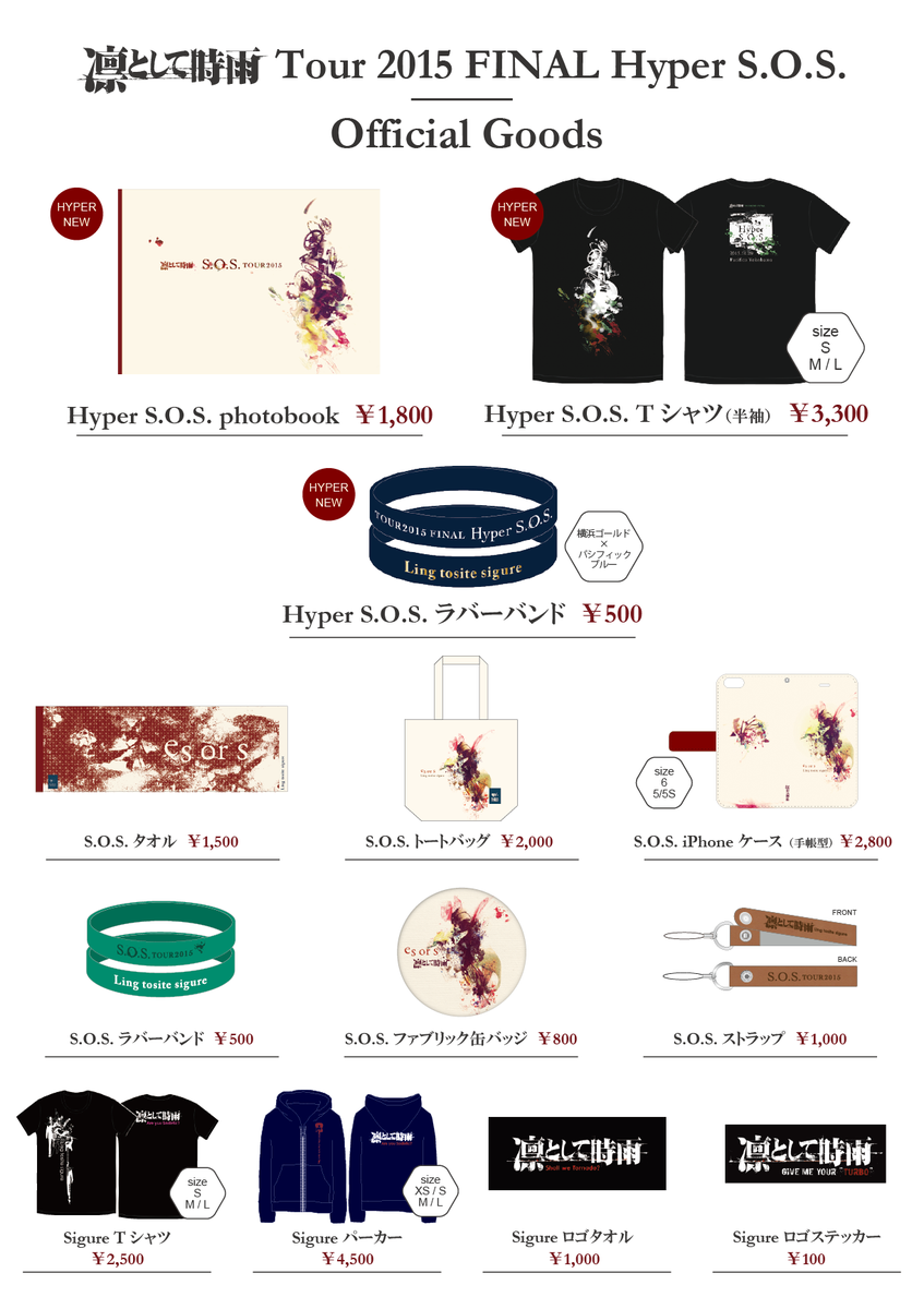 11月20日(金)にパシフィコ横浜 国立大ホールで開催される「凛として時雨 Tour 2015 FINAL Hyper S.O.S.」で新たなグッズの発売が決定しました。詳しくはこちら。sigure.jp/info/