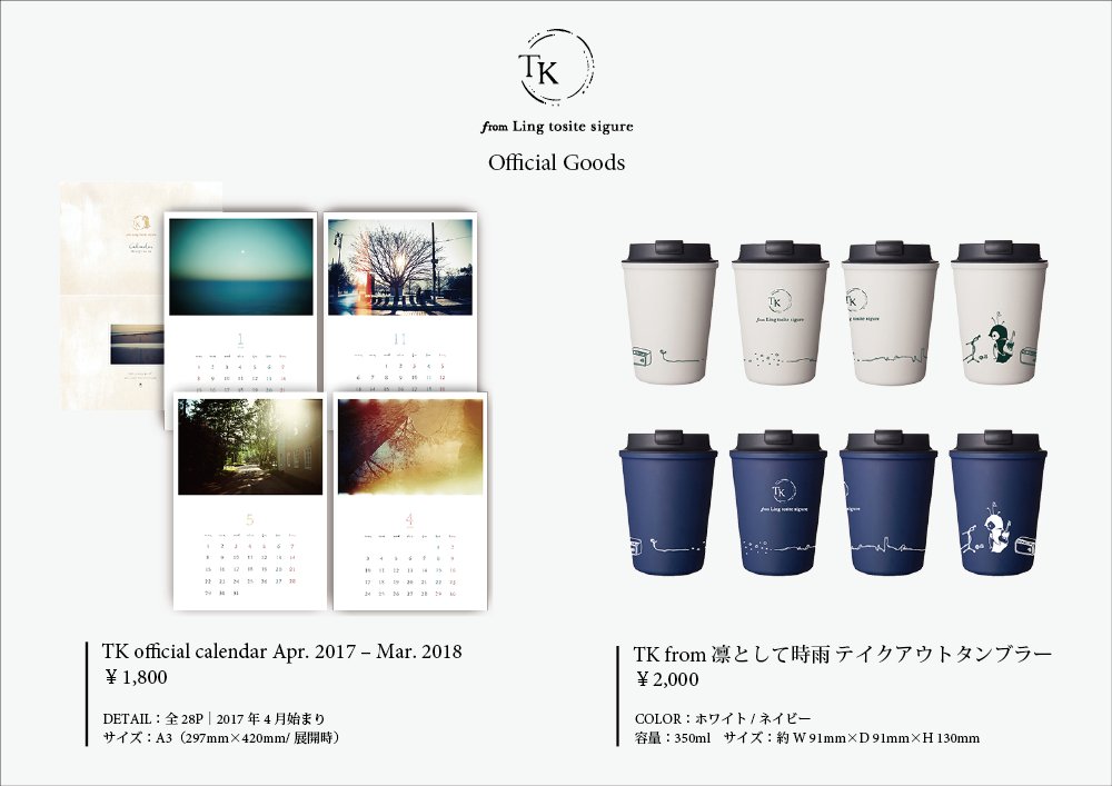12/22(木)恵比寿ガーデンホールで行われる、December’s Callingにて、テイクアウトタンブラー、オフィシャルカレンダーを販売を致します。また、12/23から通販を開始致します。shopping.deli-a.jp/artist/tk.php