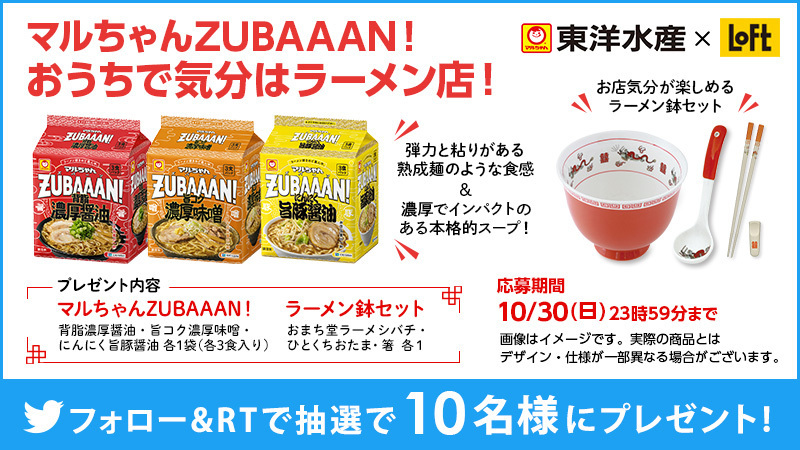 抽選で10名様に、東洋水産×ロフト おうちで気分はラーメン店「マルちゃんZUBAAAN!+ラーメン鉢セット」をプレゼント!#ZUBAAAN