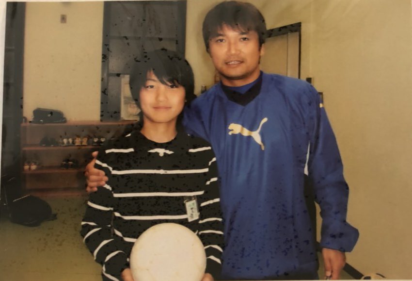 写真は僕が小学校6年生の頃、武男さんがサッカー講習に来てくださった時のものです。