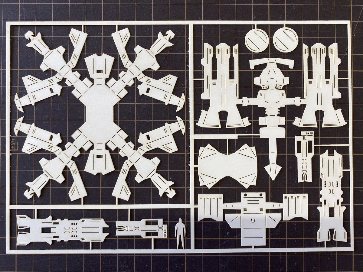 ペーパークラフト、新作作るついでに四脚ロボの型紙をランナー化してみた こいつを組み立てるとこうなります 良い、、、