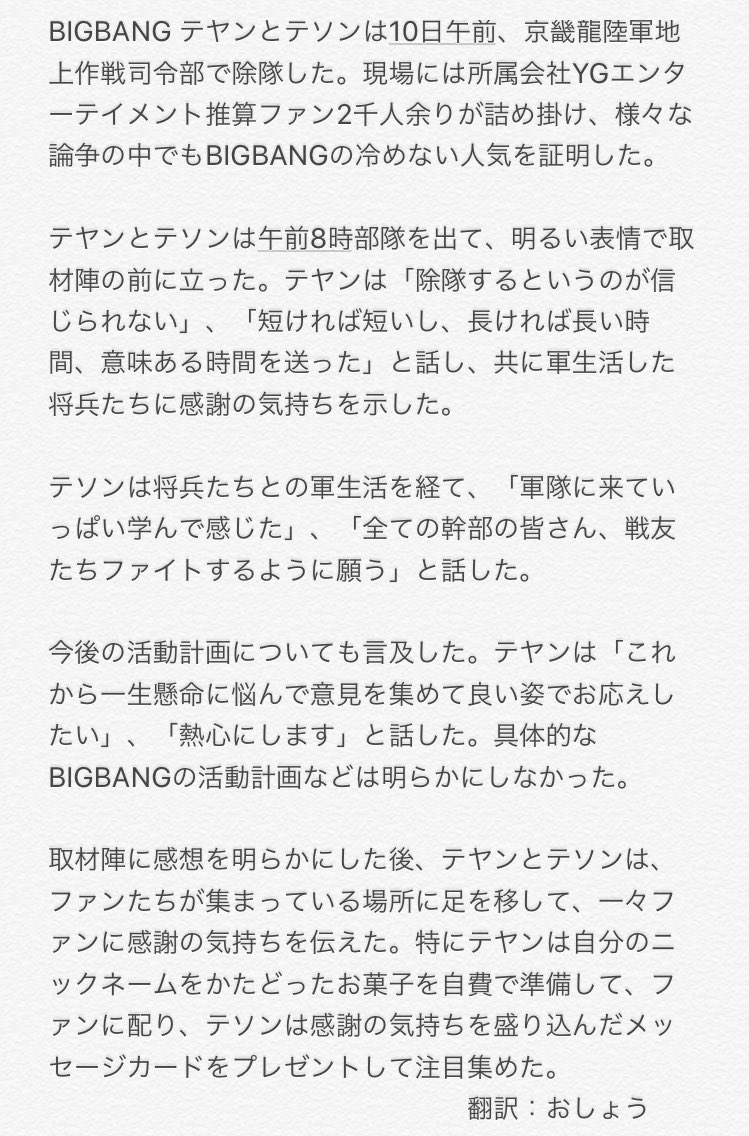 TOPもかつての麻薬投薬の前歴で大衆の視線は芳しくはない。また、TOPが演技者生活に関心があるという点も再契約の障害物になっている。ある業界関係者は「TOPが最近、演技マネジメント会社と会っていると聞いている。残りのメンバー全員が再契約するのは難しいとみられる」と語った。