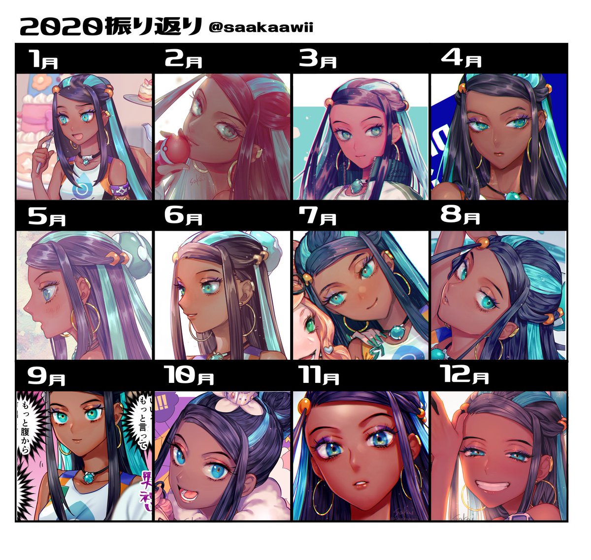 去年描いたルリnさん振り返り 1年かけてようやく表情崩せるようになった感isある
