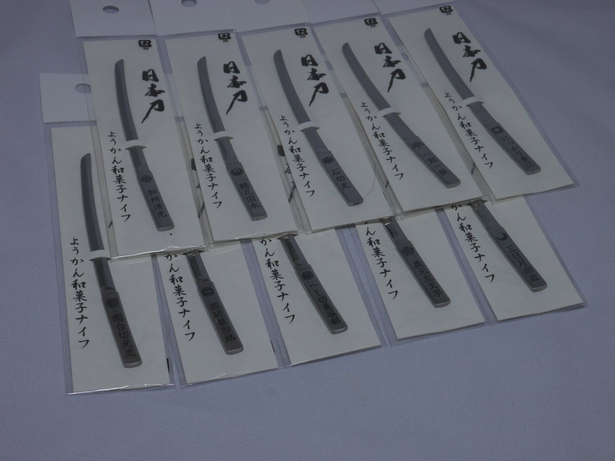 一夢庵嵐山店3周年記念として、殆ど品切れてしまった羊羹切日本刀ナイフの大復刻祭を行います。予約のみの受付になります。詳細は近日中にアップします。燭台切モチーフの黒い羊羹切光忠、大倶利伽羅モチーフの倶利伽羅龍入り羊羹切廣光なども3年ぶりに復刻予定です。1muan.shop-pro.jp/?mode=cate&cbi…