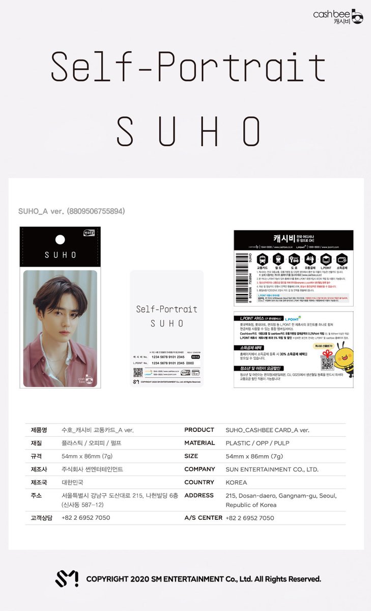수호(SUHO) - 캐시비 교통카드 : 교통카드 + 리플렛 (안내장)