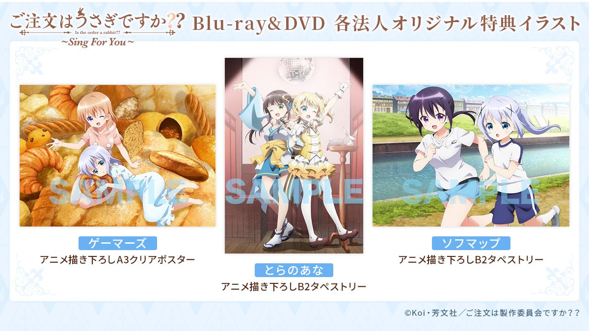 【歌姫爆誕!?】『ご注文はうさぎですか?? ~Sing For You~』は9月26日発売!劇中歌フルサイズハイレゾ音源やDJCDミニアルバム「Mix For You」、さらにイベントチケット購入申込券(抽選)など特典盛り沢山♪また各法人特典情報も公式HPにて公開中です☆gochiusa.com/ova2/tokuten.h… #gochiusa