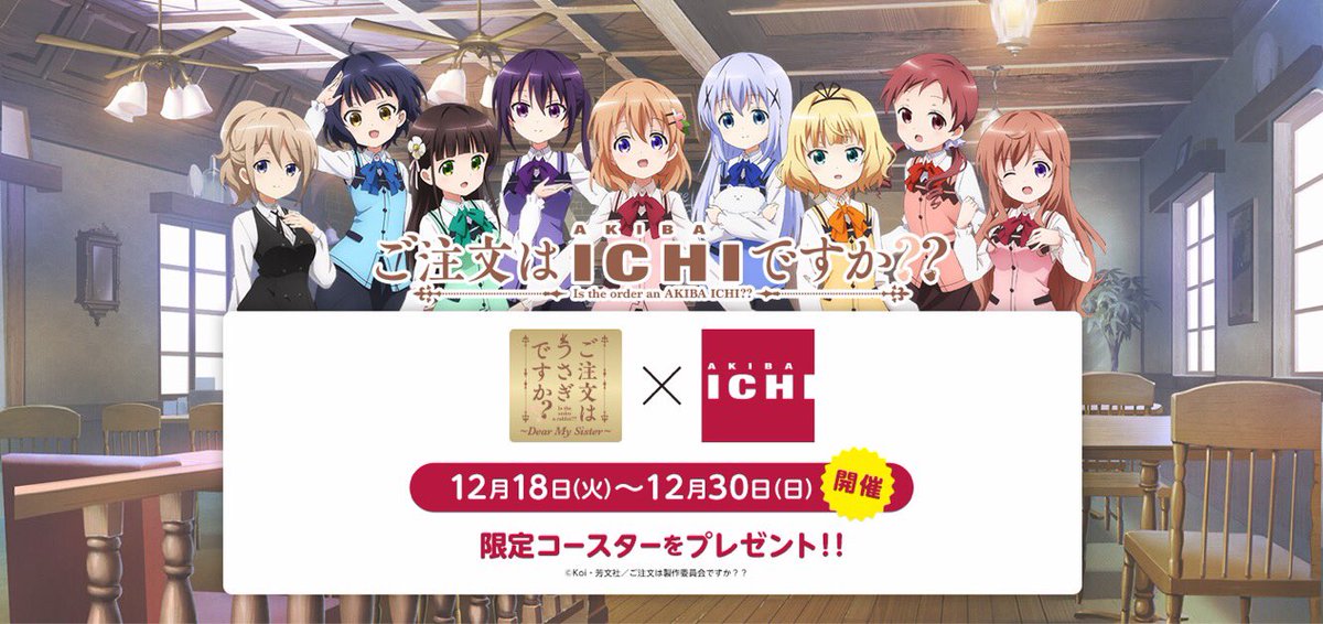 秋葉原UDXのアキバ・イチにて特製コースターが貰える「ご注文はアキバ・イチですか??」が本日から12月30日(日)まで開催!詳細は公式サイトをご確認ください♪