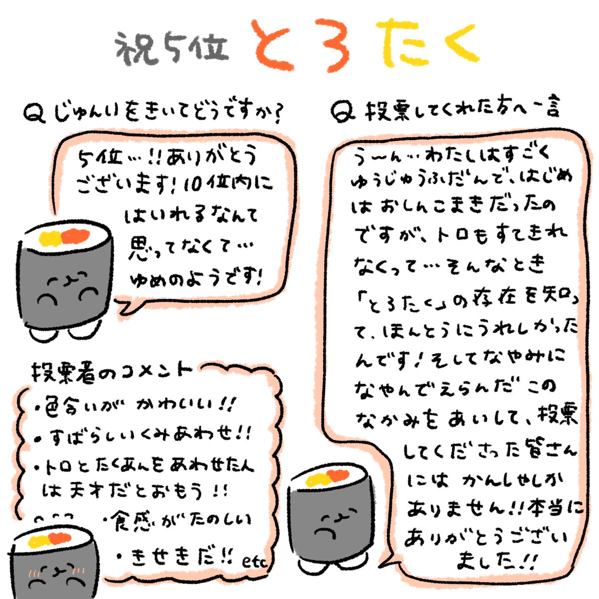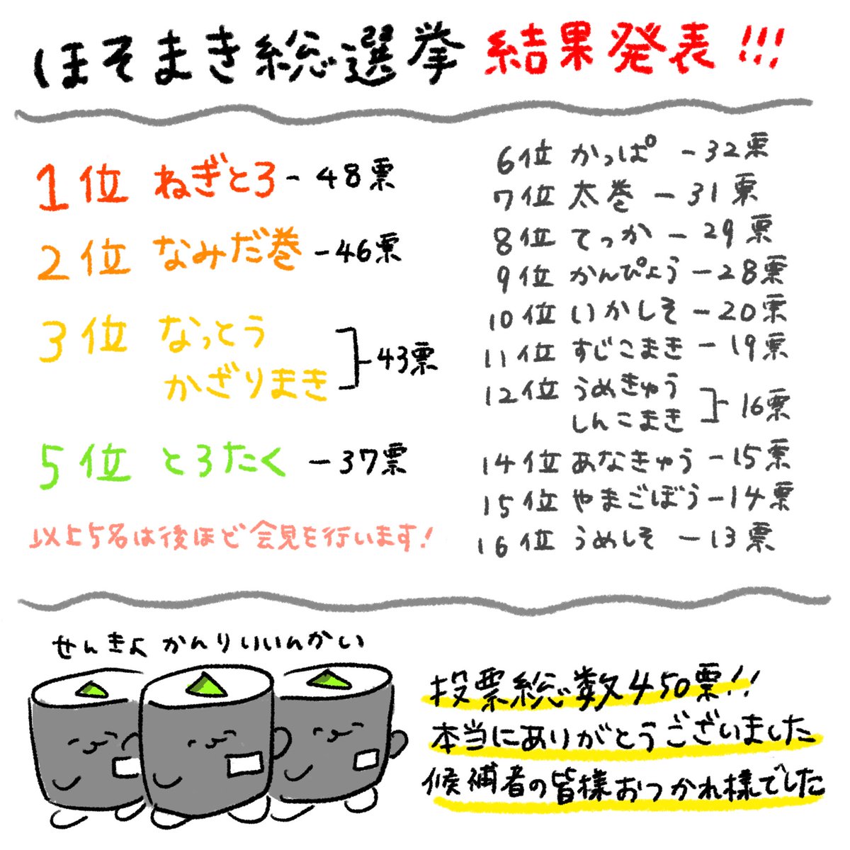 みんなでほしょまきを たびりゅんだってー おしゅしは こんかい およびでないわけね