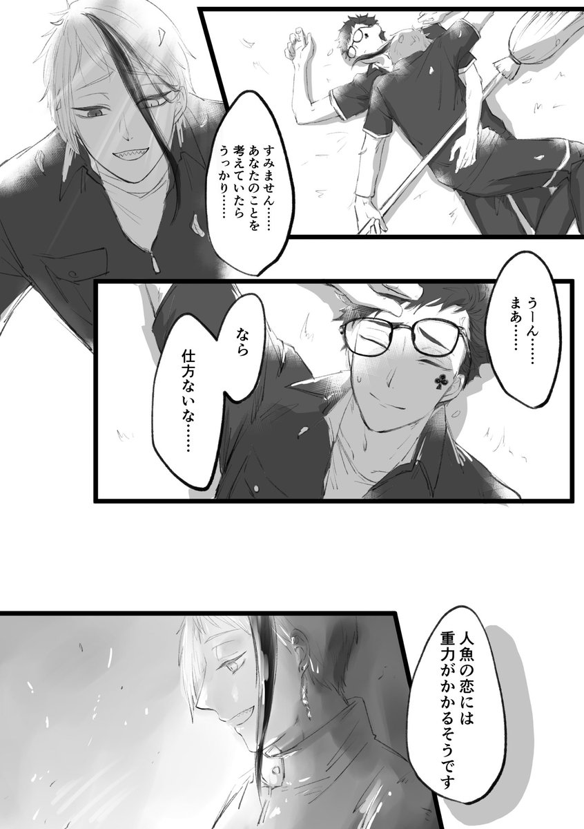 【トレジェイ 】人魚なので露出に対して羞恥心がない🐬と、むしろ自分の方がドギマギしちゃうっていう♣️の話(だった) 1/2