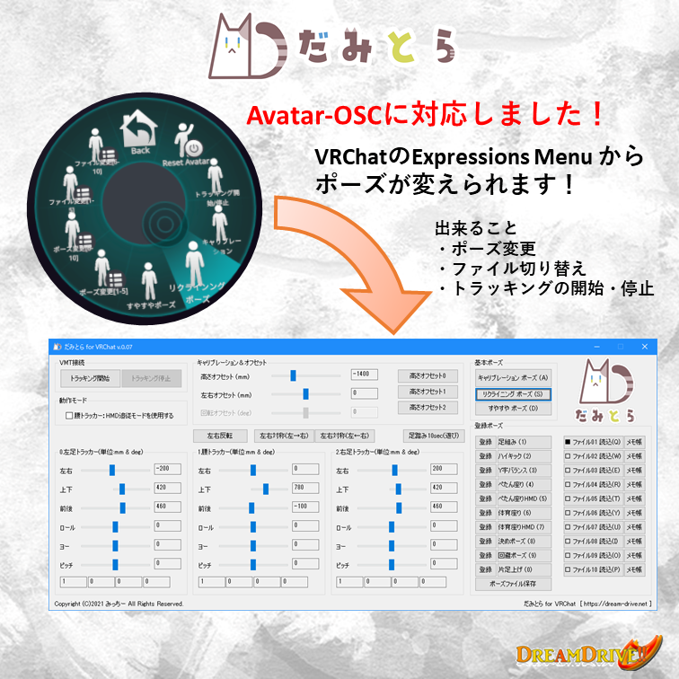 だみとら for VRChat(無料) OSC対応 | Dream Drive!! ddrive.booth.pm/items/2897804 #booth_pm
