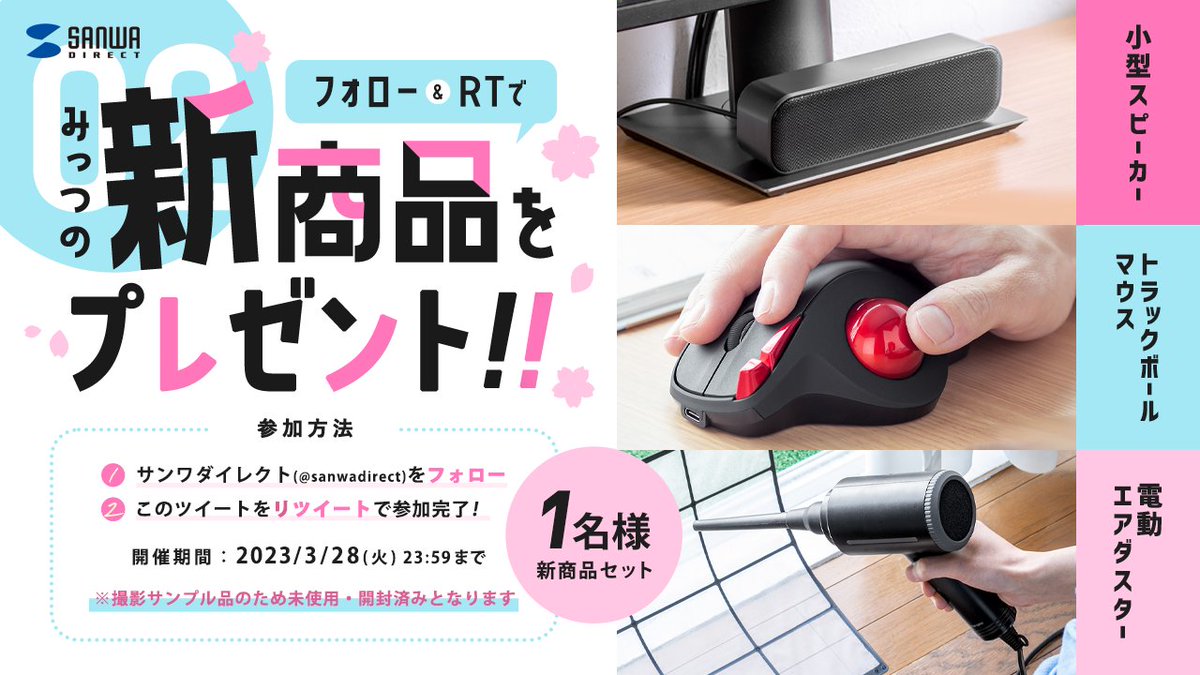 新発売の電動エアダスター・トラックボールマウス・小型スピーカーをセットで1名様にプレゼント🎁