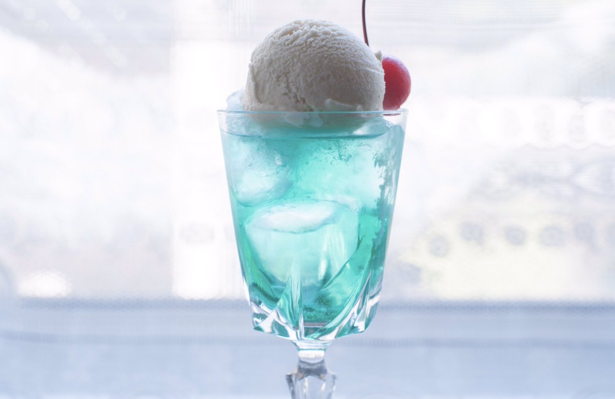 どこまでも青い海にグラスを添えたらまるで海を注いだソーダのようだった。#海の日