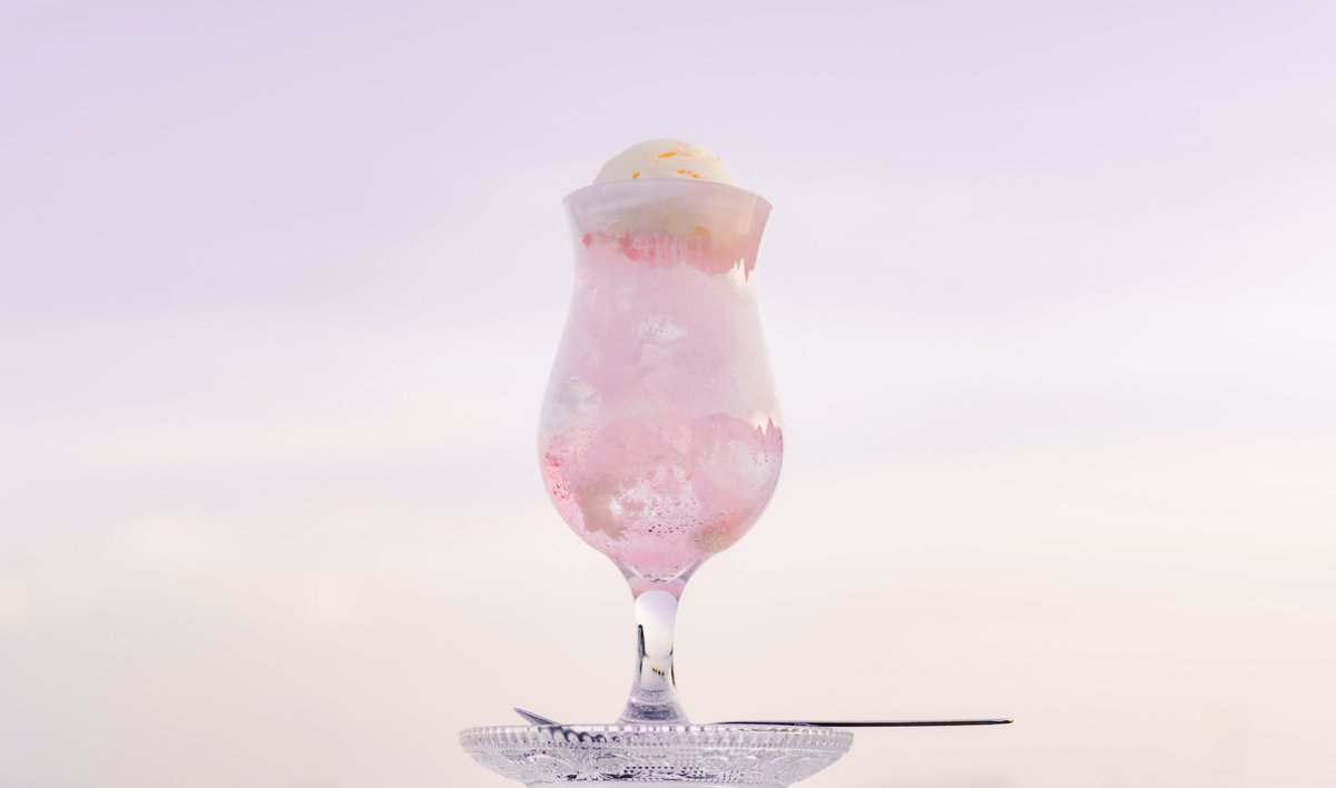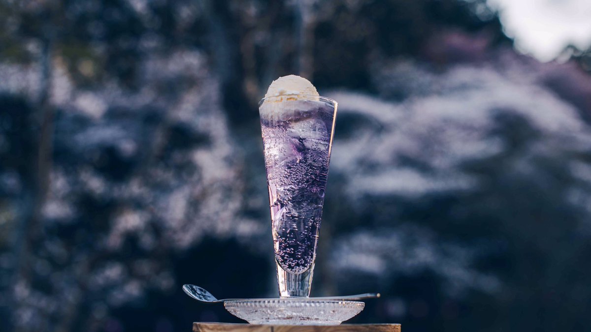 季節のクリームソーダ「藤」 ただいま、旅する喫茶高円寺店で季節のクリームソーダとして提供しております。(グラスは通常と同じグラスです。) 移ろいゆく季節ととも楽しんでいただけたら嬉しいです。