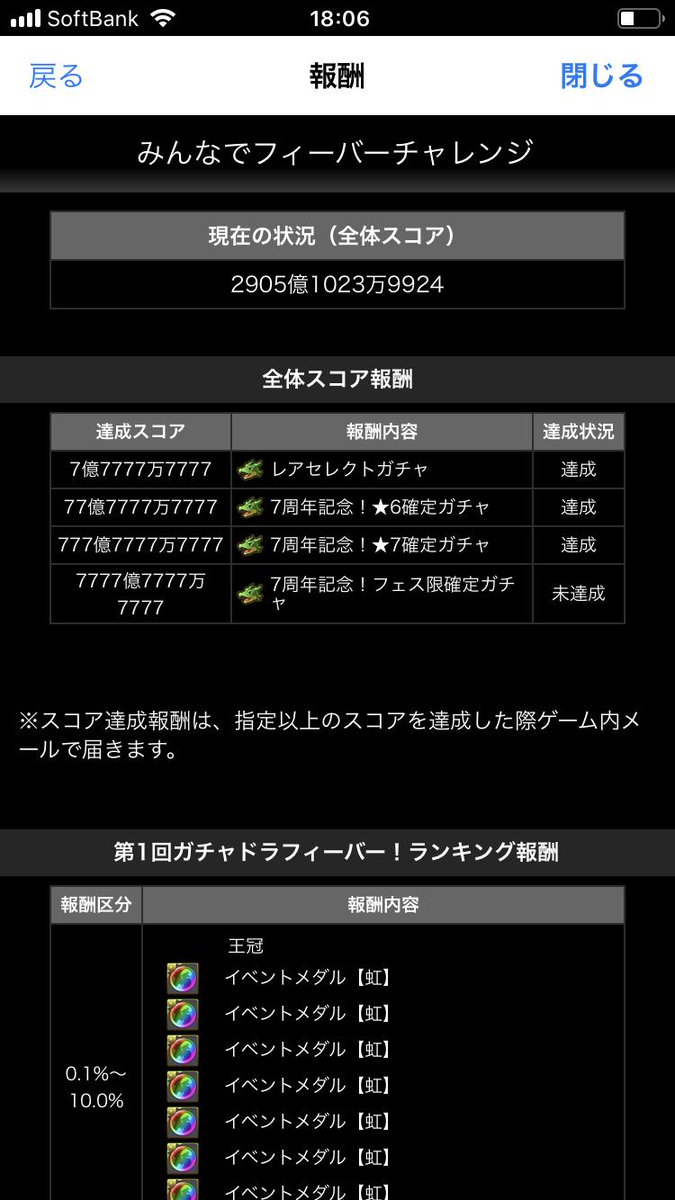 うおお!みんなでフィーバーチャレンジの全体スコア報酬達成速すぎっ!!