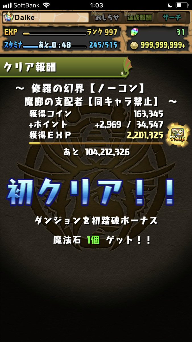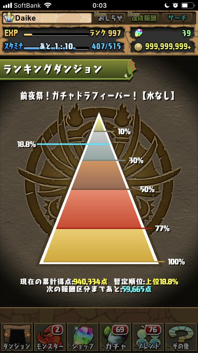 ガチャドラフィーバーを1回クリアしただけで、ガチャ報酬がいっぱいもらえるので、まだクリアしてない方はぜひお忘れなく! twitter.com/pad_sexy/statu…