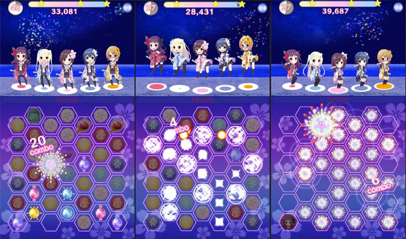 【SNSゲームでも、ハナヤマタ!】ゲーム画面もちょっと紹介( ˆᴗˆ )その2!こちらプレイ画面!上部では踊りを披露★盤面上ではピースを連続して消すと花火が上がるデス!hanayamata-snsgames.com #ハナヤマタ