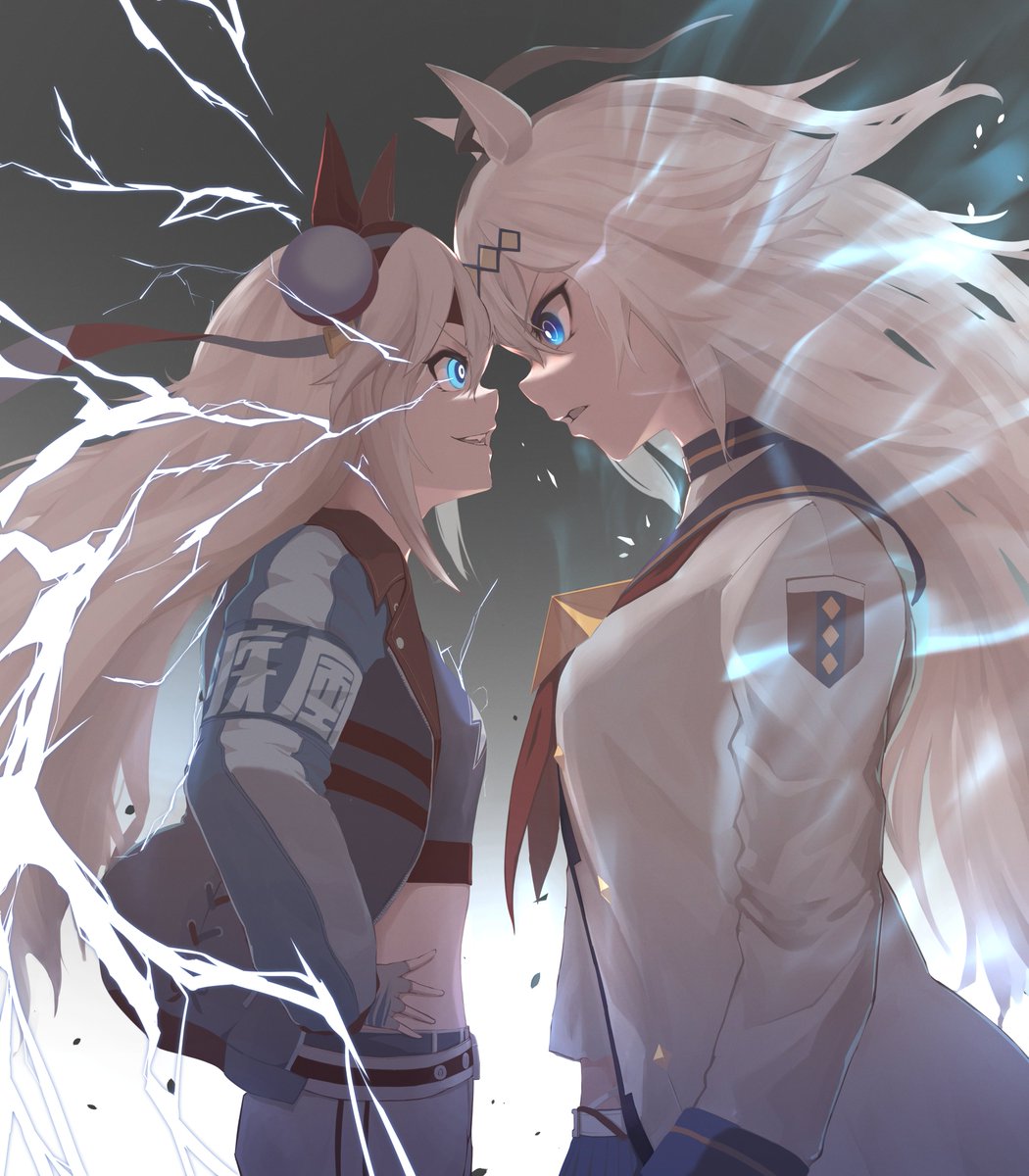 白い稲妻と芦毛の怪物 タマモクロスとオグリキャップ描きました!