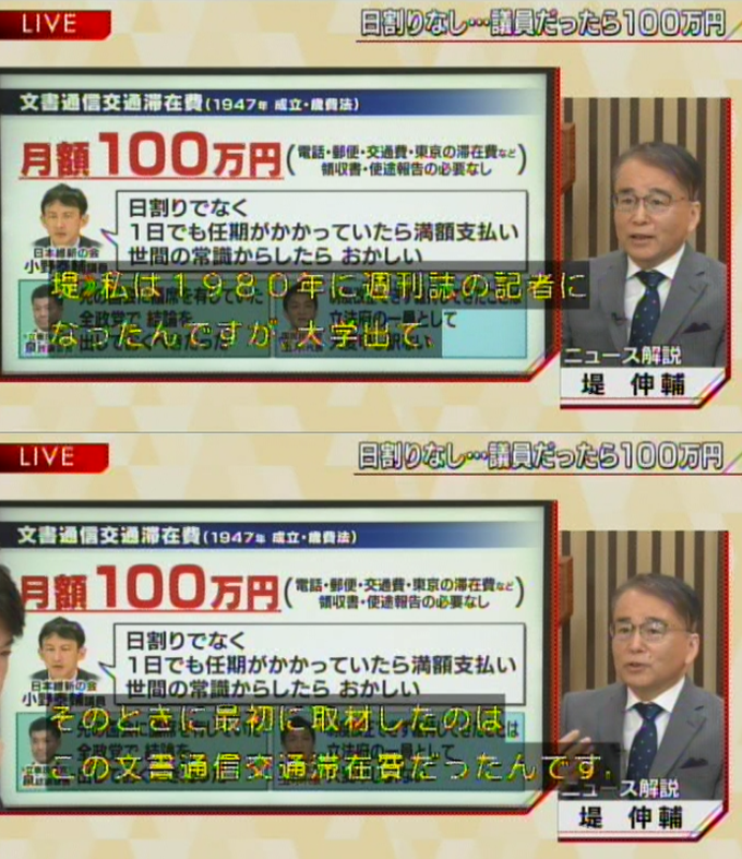 #報道1930 1980年、記者として最初の取材が「文書通信交通滞在費」だったという堤伸輔氏。「実は私が取材した時、(この問題を)告発してたのは共産党だった。共産党は実は貰った金を全部、党で共同管理してHPには使途と金額が全部公表。他の党もそれをやればいいけど誰もやってきてない訳で…」。成程…