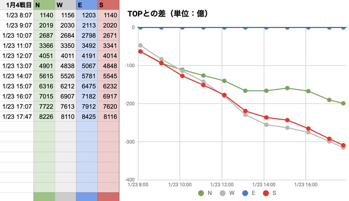 1月古戦場4日目(0:07更新分反映)。ENW!的中した方、おめでとうございます!本戦4日間お疲れ様でした!グラブル #ブックメーカー