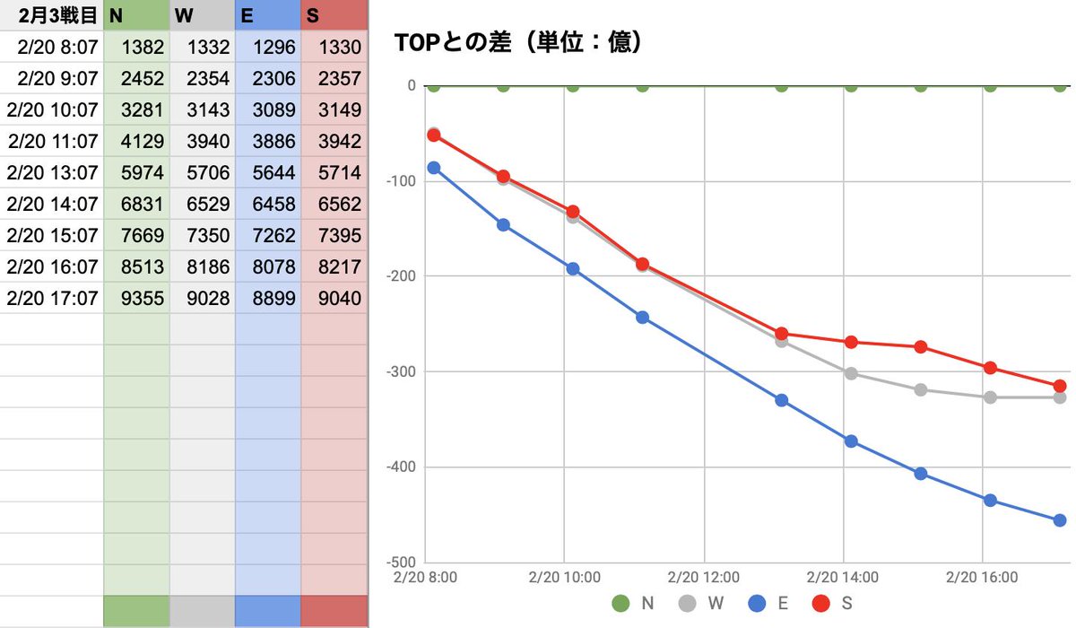 2月古戦3日目(0:07更新分反映)。WEN!終盤Eが伸びましたね。的中した方、おめでとうございます! グラブル #ブックメーカー