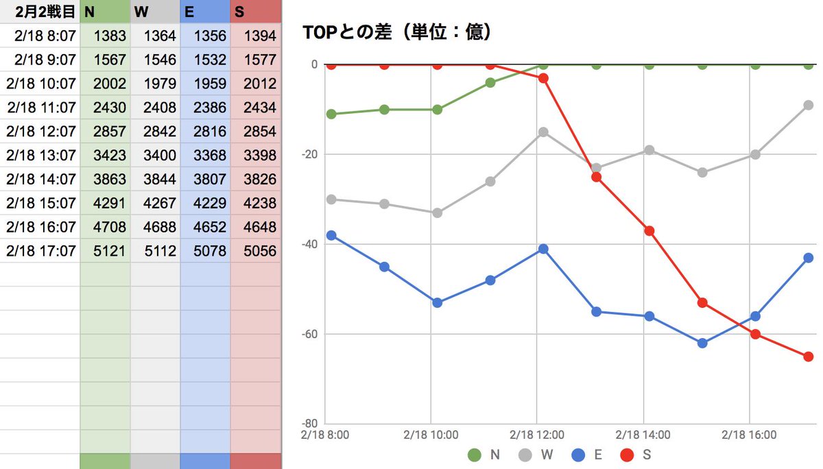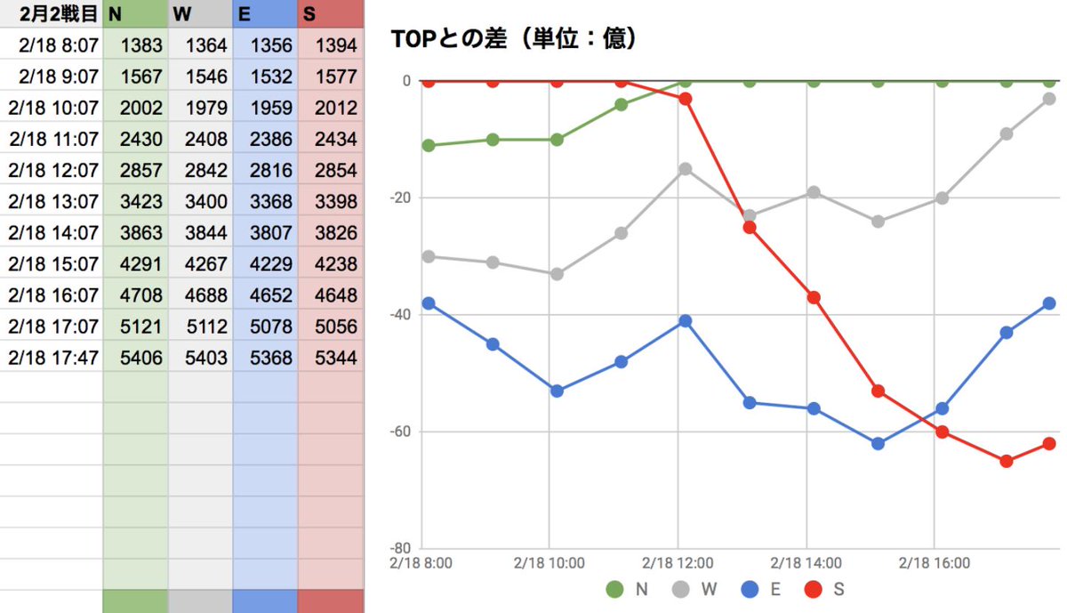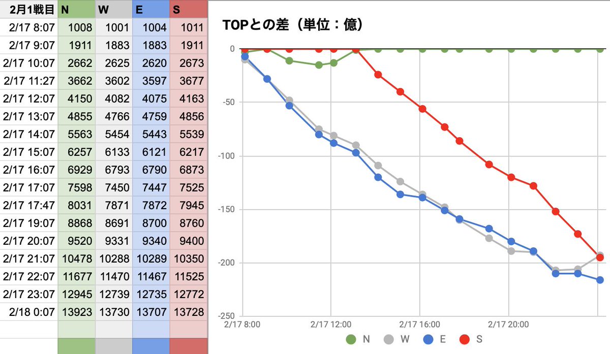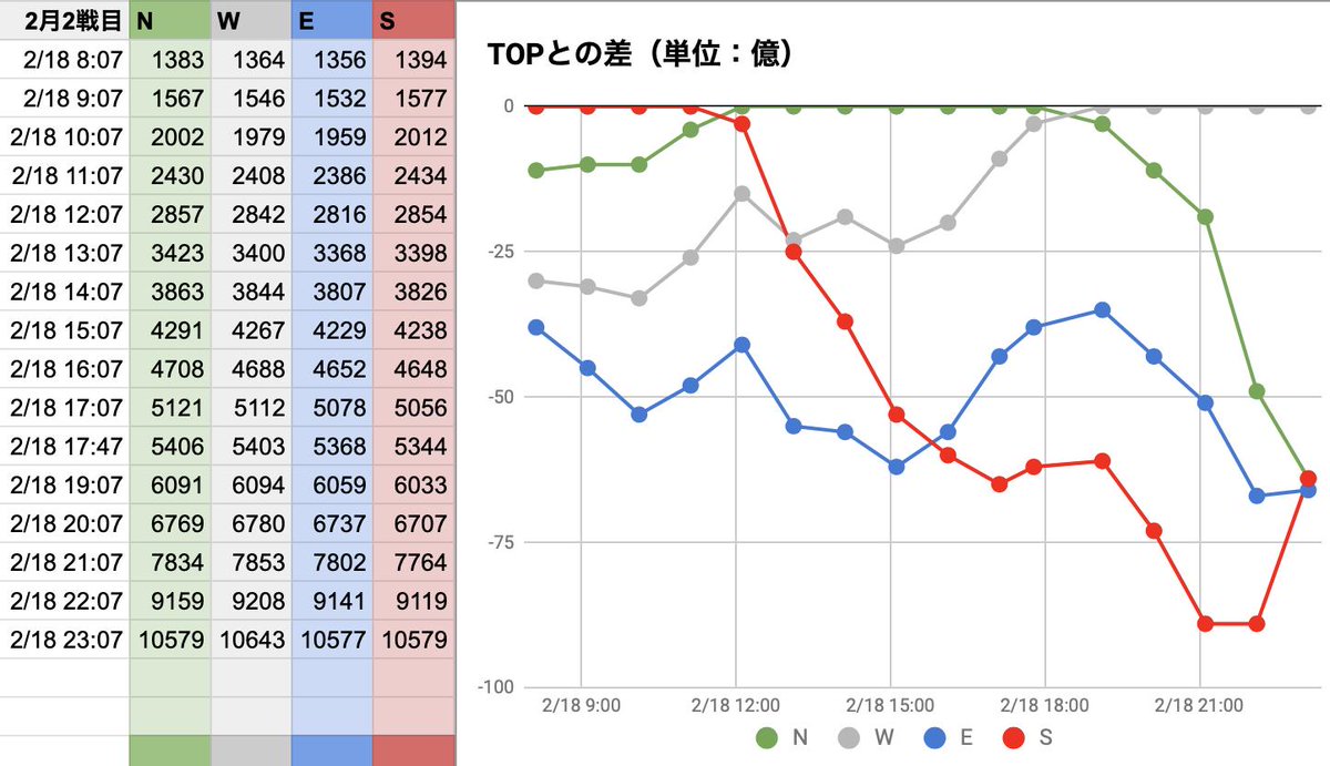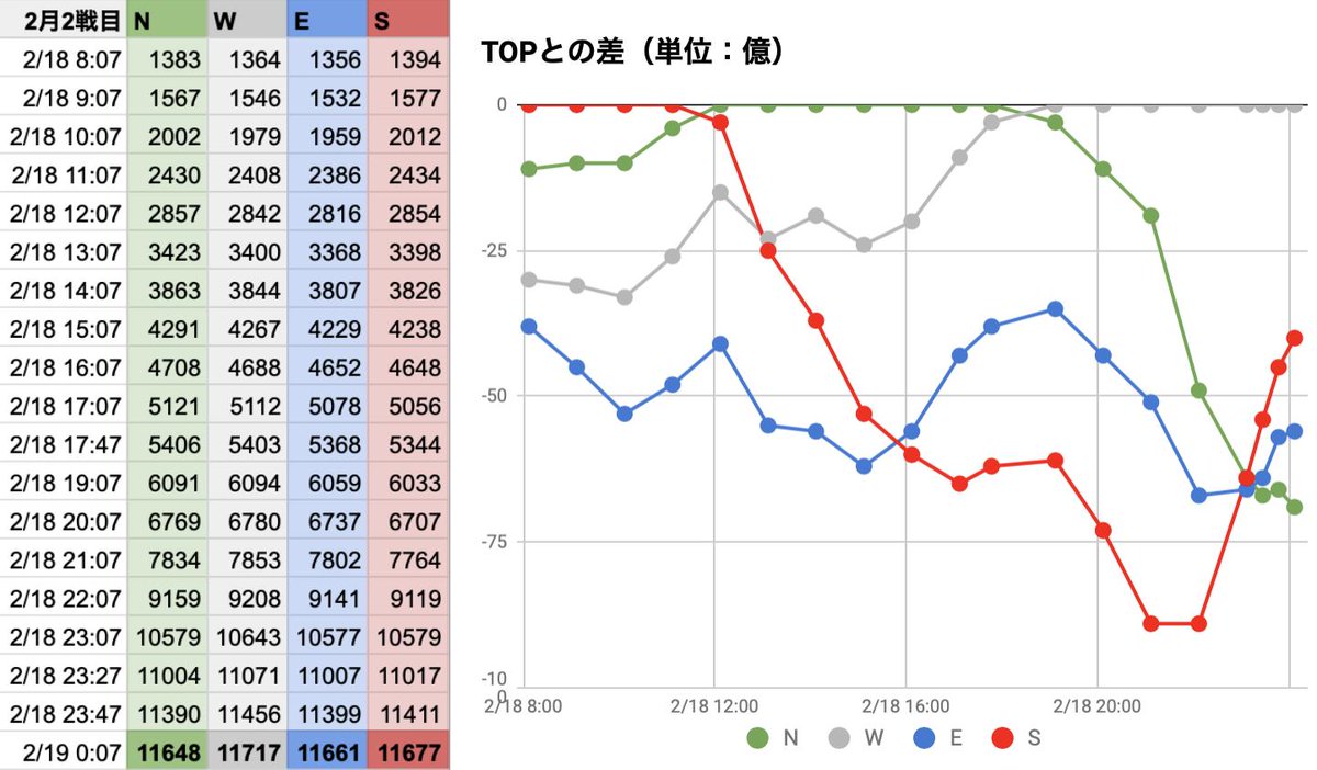 2月古戦場1日目(0:07更新分反映)。NWS!ラストWが伸びましたね。的中した方、おめでとうございます! グラブル #ブックメーカー
